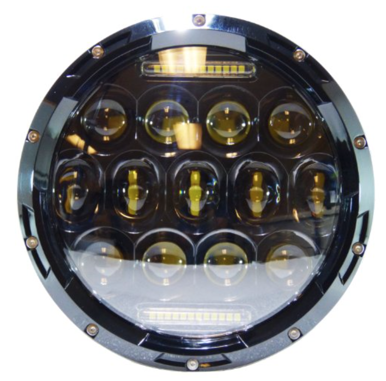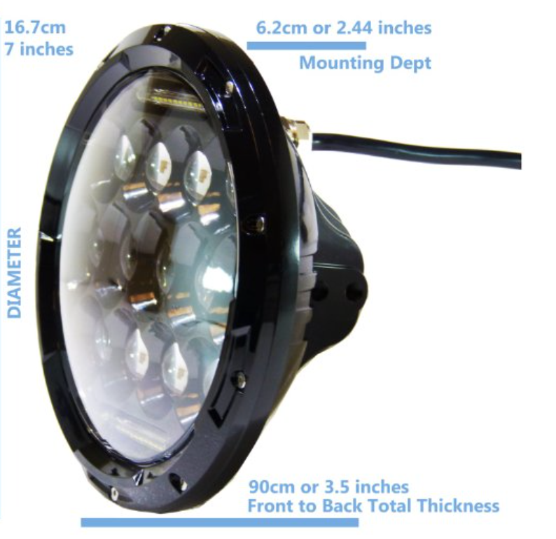 • This 75W LED light has low beam, high beam and DRL function. Will fit many vehicles and motorcycles with the standard 7" round headlight Including JEEPS. These headlights are sealed to prevent moisture and water build-up.