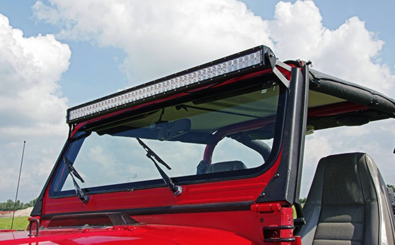 With durable steel construction and aggressive good looks, FCKLightBars Straight 50-inch LED Upper Windshield Light Bar Bracket is the ultimate solution for adding our premiere lighting system to your Jeep YJ. With its modern, stylistic design and superior strength, this upper windshield mount holds your 50-inch Light Bar between the top of your Wrangler's windshield and roof, spanning the entire width of the roof and giving a killer look.
